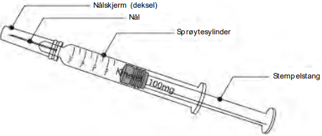 2. Det kan være en liten luftboble i den ferdigfylte sprøyten. Du behøver ikke å fjerne luftboblen før injisering. Det er ikke farlig å injisere oppløsningen med luftboblen.