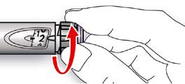 Trykk ikke på injeksjonsknappen mens du vrir den, for da vil det komme ut insulin.