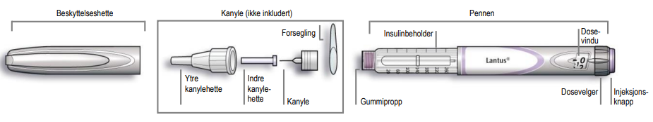 Lantus i en ferdigfylt penn er kun tilpasset injeksjon like under huden (se også avsnitt 3). Rådfør deg med legen din dersom du trenger å injisere insulinet ved hjelp av en annen metode.