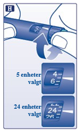 Vri dosevelgeren for å velge antall enheter du har behov for å injisere.