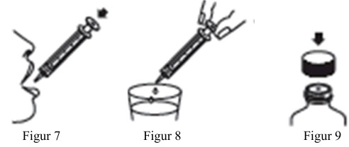 7. Tøm innholdet i sprøyten direkte inn i munnen ved å trykke stempelet til bunnen av sprøyten (figur 7).