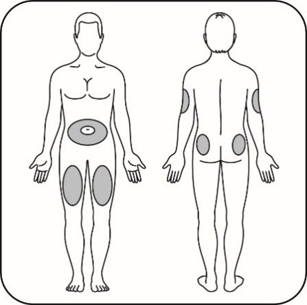 Bytt (rotér) injeksjonssted for hver injeksjon.