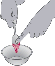 Dunk på doseposen for å få ut alt granulatet.