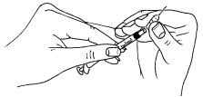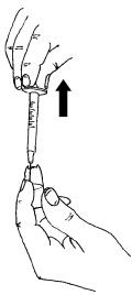 Vend sprøyten med spissen opp og knips lett på den slik at eventuelle luftbobler samles i spissen. Trykk forsiktig på stemplet til den første væskedråpen kommer ut.