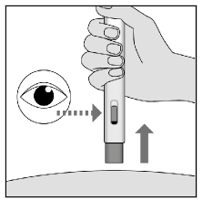 2. Kontroller pennen før bruk (figur D) Kontroller navnet og dosen på pennen nøye og bekreft at du har riktig legemiddel. Hvis du ikke kan se dette tydelig, må du be om hjelp.