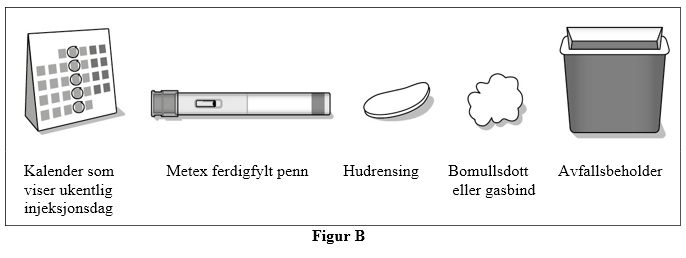 Denne bruksanvisningen inneholder informasjon om hvordan du injiserer Metex ferdigfylt penn.