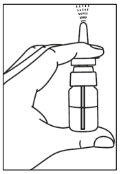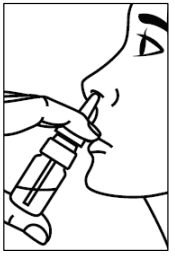 5. Før spissen rett inn i neseboret og spray én gang. Pust normalt gjennom nesen uten å trekke pusten hardt.