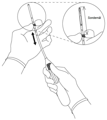 3. Mens glideren holdes i ytterste posisjon, plasseres oversiden av måleringen slik at lengden tilsvarer sondemålet av uterus (Figur 3).