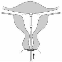Mirena tas ut ved å trekke forsiktig i trådene med tang (Figur 8).