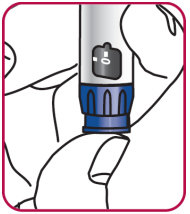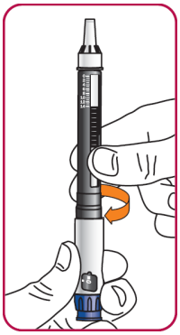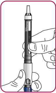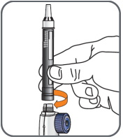 8. Med den ytre kanylehetten pekende oppover, skru sylinderampullen på pennen i retning med klokka til det ikke er noe mellomrom igjen mellom sylinderampullen og pennen.