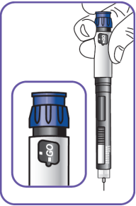 13. Hold pennen slik at du kan se «GO» i doseringsvinduet med kanylen pekende nedover.