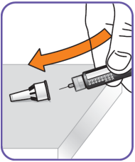 2. Skru av stempelstangbeskyttelsen eller den tomme legemiddelsylinderampullen i retning mot klokka, og kast den i beholderen for skarpe gjenstander.