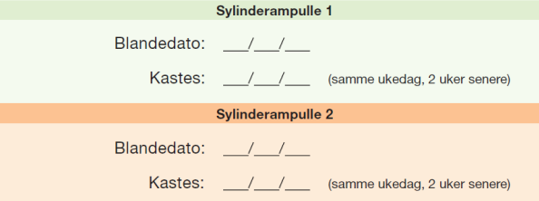 Kast alle sylinderampuller med blandet oppløsning som er eldre enn 14 dager.