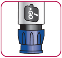 3. Trykk på injeksjonsknappen. Du bør se «0» på linje med hakket i doseringsvinduet. Hvis du ikke ser «0» på linje med hakket trykker du på injeksjonsknappen til den er på linje.
