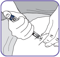 For å unngå at det blir injisert for lite legemiddel, må du holde kanylen i huden i 10 sekunder ETTER at du har trykt på injeksjonsknappen.