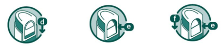 5. Før knappen (d) nedover til den kommer i en posisjon der du kan trykke den lett innover (e).