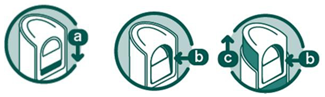 2. Mens du holder knappen inne, før tommelen oppover (c) for å låse opp sprayflaskens øvre del. Slipp deretter knappen.