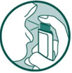 4. Trykk hardt og bestemt på sprayflaskens hode for å spraye 1 dose (spraydusj) inn i munnen. Unngå å treffe leppene. For å unngå at sprayen kommer ned i halsen skal du ikke inhalere samtidig. For å oppnå best resultat skal man ikke svelge i løpet av de første sekundene etter sprayingen.