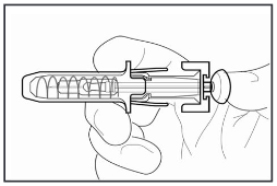 Hold sprøyten med spissen pekende oppover. Fjern beskyttelsesdekselet fra sprøyten. Sprøyten er nå klar til bruk. Det kan være en liten luftboble i sprøyten. Du behøver ikke å fjerne luftboblen før injeksjon. Injeksjon av en oppløsning med en luftboble er ufarlig.