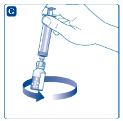 Preparatet er nå klart for injisering i en blodåre. Følg injeksjonsprosedyren som legen din har instruert deg i.