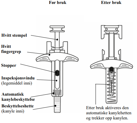 Instruksjoner for bruk av ferdigfylt sprøyte er gitt på den andre siden av dette pakningsvedlegget.