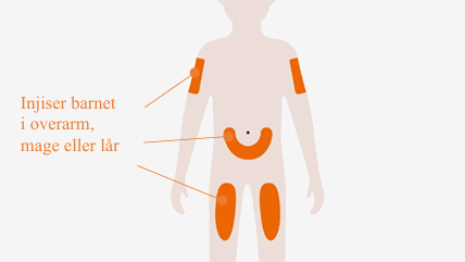 Skal ikke injiseres der huden er skadet, sår, rød eller hard. Skal ikke injiseres innenfor 5 cm fra navlen. |