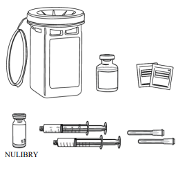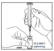 NULIBRY kommer som et pulver i et hetteglass. Hvert hetteglass med NULIBRY må lages med sterilt vann til injeksjonsvæsker for å løse opp pulveret og lage en oppløsning før bruk. Ikke klargjør oppløsningen med noe annet enn sterilt vann til injeksjonsvæsker.