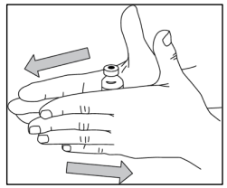 Trinn 10: Avhending Etter injeksjonen skal all ubrukt NULIBRY-oppløsning, sprøyten med injeksjonssettet, hetteglasset og annet avfallsmateriale kastes på en sikker måte, som instruert av apoteket. Ikke kast det sammen med husholdningsavfall. Disse tiltakene bidrar til å beskytte miljøet. |
