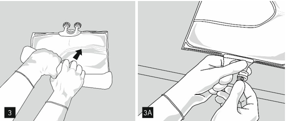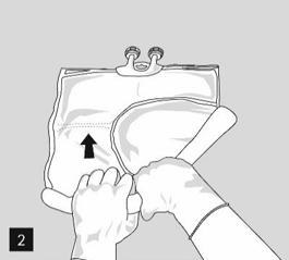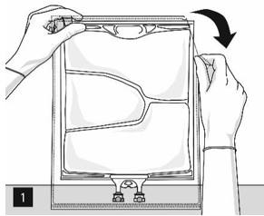 Åpning: Riv opp ytterposen ved å dra i rivekantene (figur 1). Ta posen ut av den beskyttende ytterposen. Kast ytterpose, oksygenindikator og oksygenabsorbent.