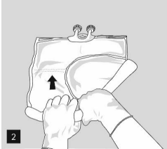 Inspiser den indre posen visuelt for lekkasjer. Poser som lekker skal kastes, da sterilitet ikke kan garanteres.
