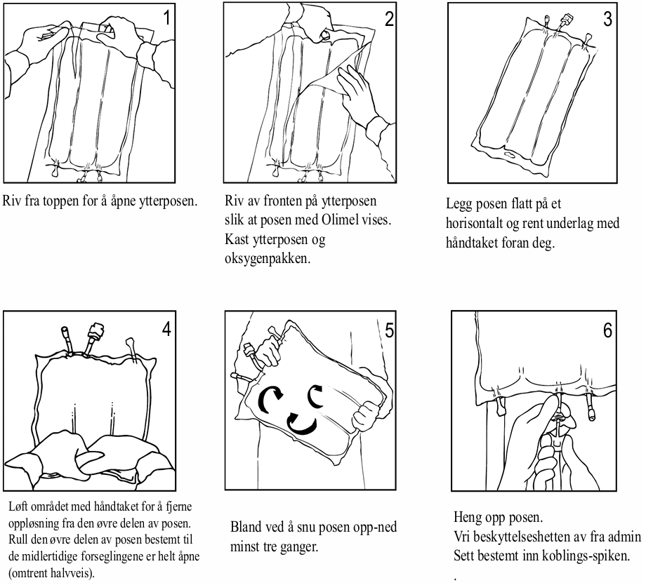 Olimel N9E skal kun brukes under medisinsk tilsyn.