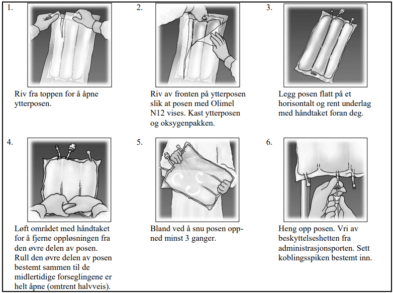 Figur 1: Trinnene i tilberedelsen for administrasjon av Olimel N12