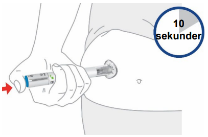 Fortsett å holde den klare bunnen bestemt mot huden. Du vil høre et nytt høyt klikk om ca. 10 sekunder etter det første klikket (injeksjonen er fullført).