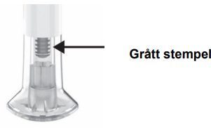 Du vet at injeksjonen er fullført når det grå stemplet er synlig.