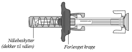 Den ferdigfylte sprøyten har en forlenget krage som gjør det enklere å holde og injisere, samt en nålebeskytter som automatisk dekker til nålen etter fullført injeksjon.