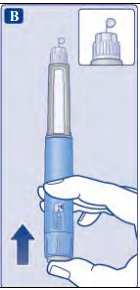 Ikke sett en ny nål på pennen før du er klar til å ta injeksjonen. |