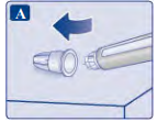 Nålen er dekket av to hetter. Du må fjerne begge hettene. Dersom du glemmer å fjerne begge hettene, vil du ikke få injisert noe oppløsning.