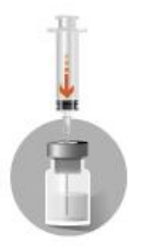 Tilstedeværelse av bobler på toppen av det frysetørrede pulveret er vanlig for dette legemidlet. Følgende trinn må utføres i angitt rekkefølge. |
