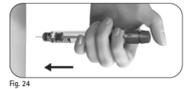 5.2 Plasser tommelen i midten av doseinnstillingsknappen. Trykk doseinnstillingsknappen sakte helt inn og hold den inne for å fullføre hele injeksjon (figur 25).