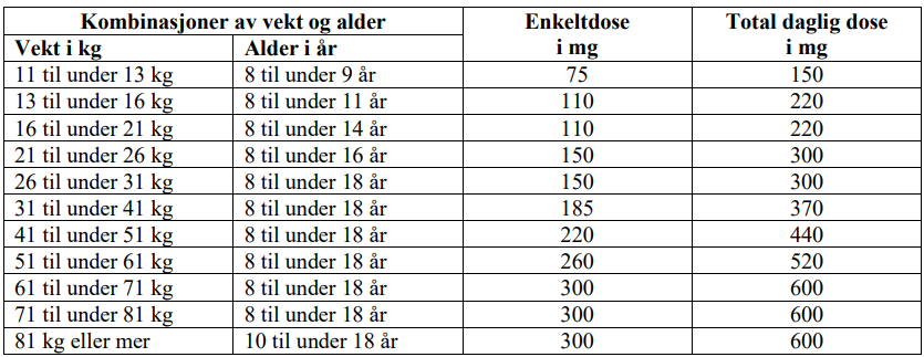 dersom du er voksen og veier 50 kg eller mindre