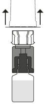 Hvis mer enn ett hetteglass med produkt er nødvendig for å få en tilstrekkelig dose, gjenta instruksjonene over med ytterligere en pakning som inneholder en ny adapter. Ikke bruk adapteren om igjen.