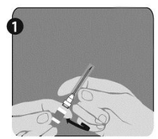 Etter fullført rekonstituering av vaksinen fjerner du lokket fra den andre nålen (som beskrevet i trinn 1 for nålene) og bytter ut nålen som ble brukt til rekonstituering med den andre nålen som skal brukes til administrasjon. Ikke bruk den samme nålen til rekonstituering og administrasjon.