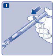 Dersom du trenger mer enn ett hetteglass for at du skal få full dose, gjenta trinn A til J med ytterligere hetteglass, hetteglassadaptere og ferdigfylte sprøyter inntil du har oppnådd din nødvendige dose.