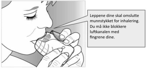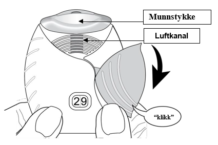 Når du tar inhalatoren ut av folieboksen vil den være i ”lukket” posisjon. Ikke åpne inhalatoren før du er klar til å inhalere en dose av legemidlet.