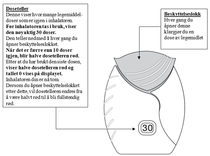 Dersom du åpner og lukker beskyttelseslokket uten å inhalere legemidlet vil du miste dosen. Den tapte dosen vil holdes inne i inhalatoren, men den vil ikke lenger være tilgjengelig. Det er ikke mulig at du ved et uhell tar en ekstra dose eller en dobbel dose i en inhalasjon.