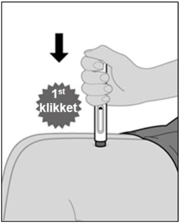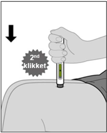 a. Etter at du hører det 2. høye "klikket", fortsett å holde pennen fast mot huden og teller sakte til minst fem for å sikre at du injiserer hele dosen.