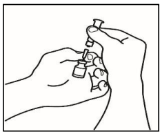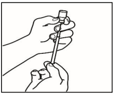 2.5 Rull hetteglasset forsiktig mellom håndflatene i omtrent 15 sekunder. Snu deretter hetteglasset forsiktig opp-ned én gang med rekonstitueringskanylen og den tomme sprøyten fortsatt i hetteglasset.