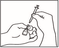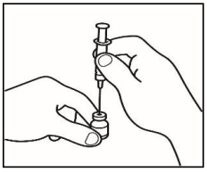 3.2 Ta injeksjonssprøyten og fest den til rekonstitueringskanylen som fortsatt er i hetteglasset.