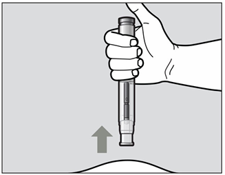 Fortsett å klype huden sammen mens du holder den ferdigfylte pennen på plass.