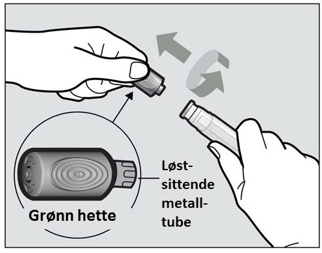 Dersom du ikke får til å fjerne den grønne hetten må du spørre en omsorgsperson om hjelp eller rådføre deg med helsepersonell.